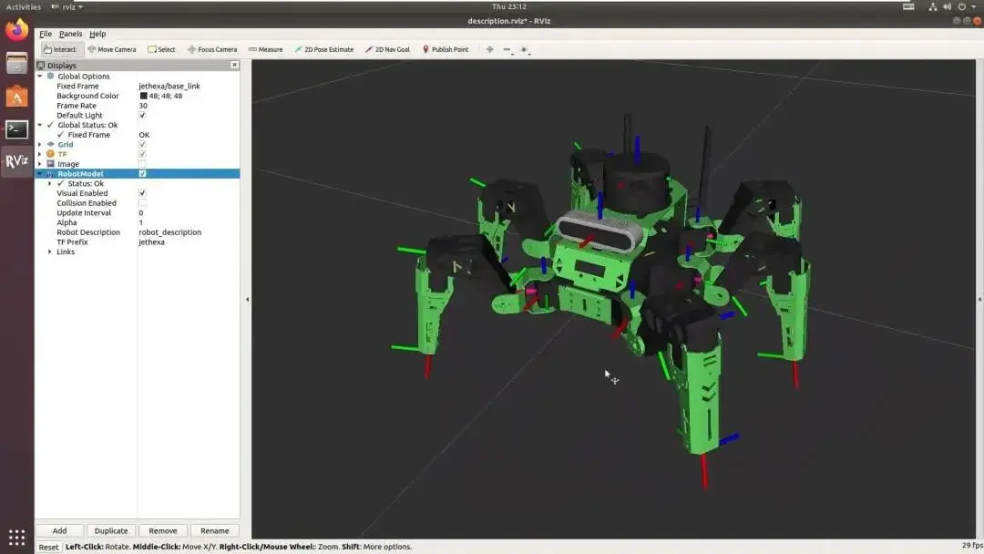 Đặc biệt, JetHexa hỗ trợ mô phỏng môi trường ROS, với mô hình mô phỏng giống hệt phiên bản thực tế. Điều này giúp người dùng tiết kiệm thời gian và công sức trong việc phát triển kịch bản hoặc thử nghiệm. Điểm cộng lớn nhất chính là toàn bộ mã nguồn của JetHexa được mở, giúp các lập trình viên dễ dàng chỉnh sửa và mở rộng tính năng theo nhu cầu riêng.