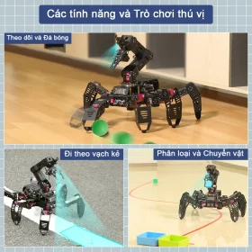SpiderPi Pro là một robot hình nhện tiên tiến, tích hợp công nghệ AI vision và được vận hành bởi Raspberry Pi. Sở hữu các servo bus thông minh với mô-men xoắn 20KG, cánh tay robot 5 bậc tự do (DOF), cảm biến siêu âm phát sáng, cảm biến IMU, và mô-đun ma trận điểm, SpiderPi Pro có thể lập trình bằng ngôn ngữ Python. Đây là nền tảng lý tưởng để nghiên cứu về điều khiển chuyển động cho robot hình nhện, thị giác máy, OpenCV, học sâu, cùng nhiều lĩnh vực công nghệ hiện đại khác.